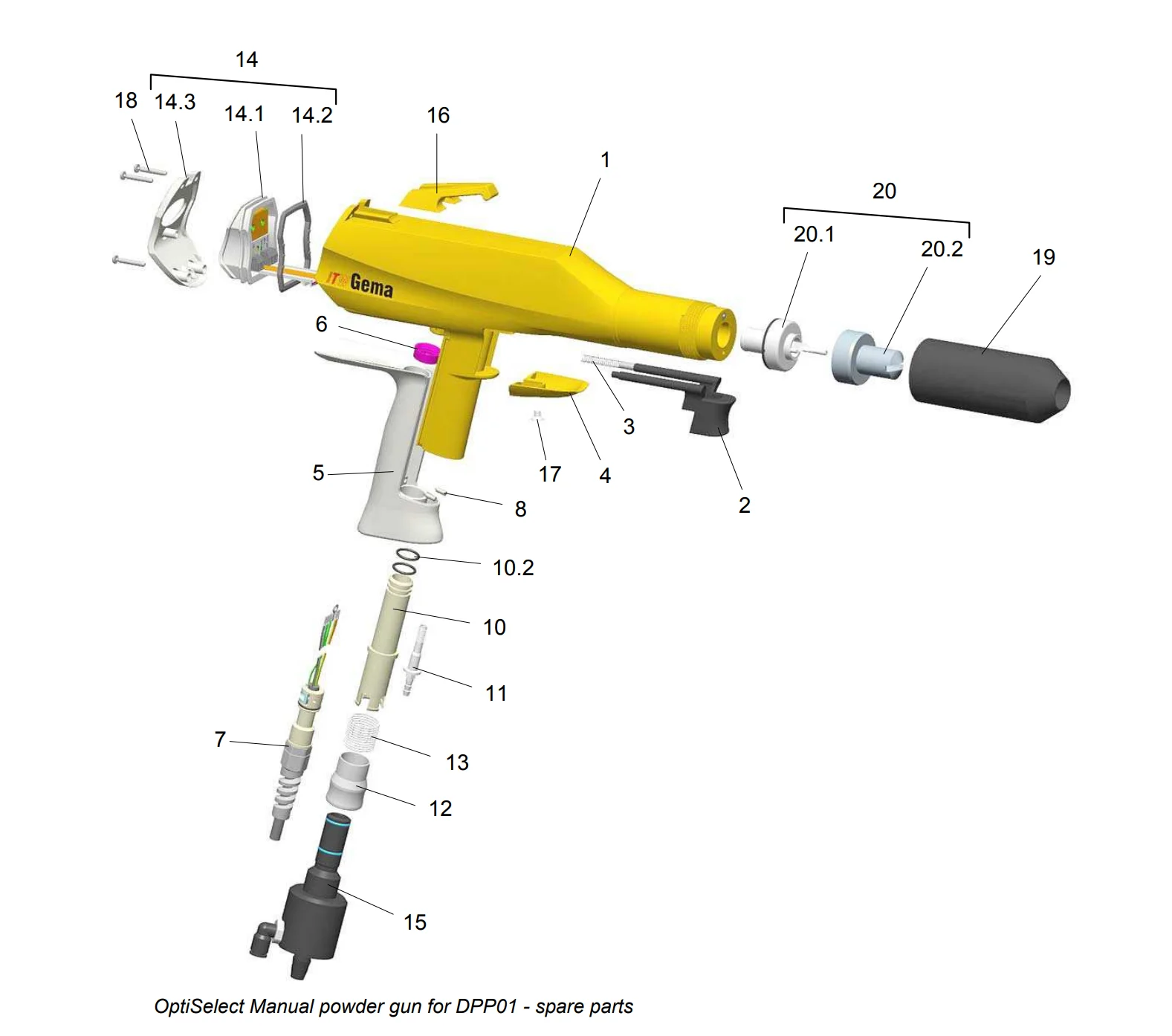 1000049 OptiSelect Manual powder gun sFlat jet nozzle 1000055 electrode holder complete 1000047
